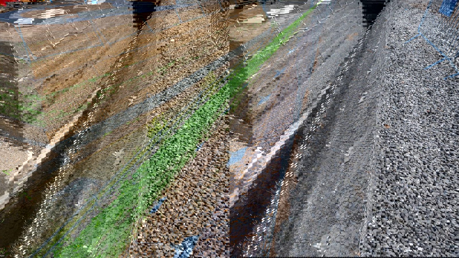 Head of Construction for Maccaferri Ltd, Allan Rice, explained: “Changes to the required site levels caused concerns that an existing Green Terramesh structure would be overloaded by the increased height. Consequently, the Esh Civils team identified the foam glass aggregate which offered not only an 80% weight reduction compared to normal fill materials, but comprises 99% recycled glass. This was then used as structural backfill to a new Green Terramesh reinforced soil slope.”