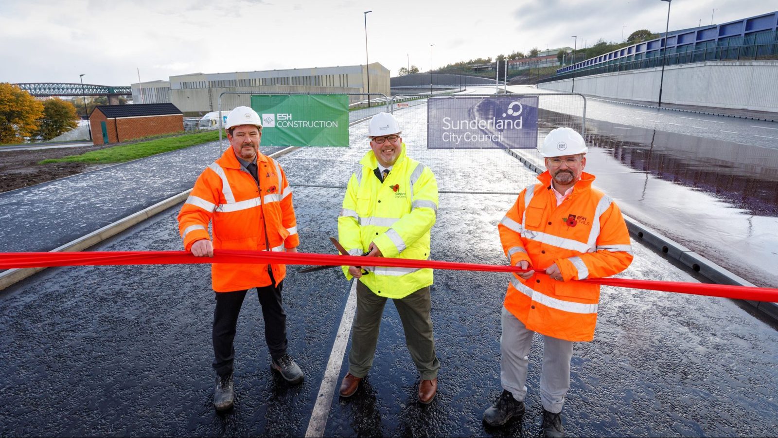 The 2.4km dual carriageway was unveiled in an opening ceremony held on Wednesday, 3rd November. Esh Chief Executive and Executive Director, Andy Radcliffe and Stephen Wilkie, along with SSTC3 Project Director, Steve Garrigan, joined the Leader of Sunderland City Council Graeme Miller on site to cut a ceremonial ribbon and watch the first vehicles travel the brand new route.