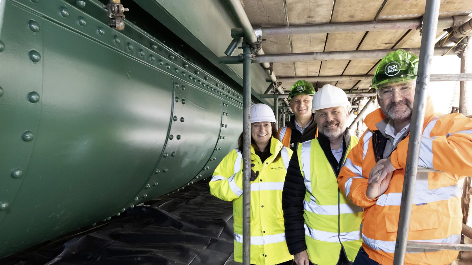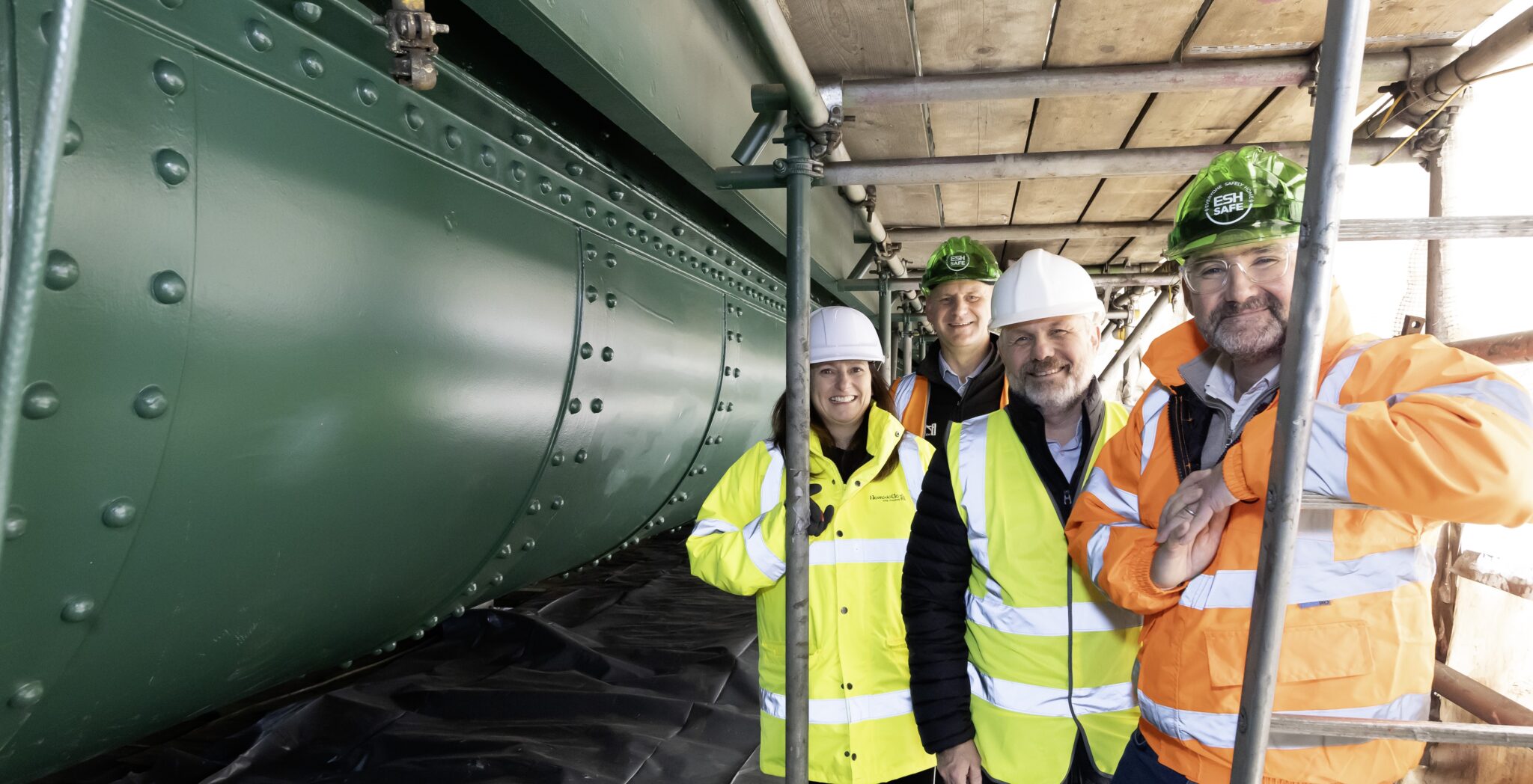 Esh Construction is carrying out the restoration on behalf of Newcastle and Gateshead Councils. Esh’s Chief Executive, Andy Radcliffe, said: “The work going on behind the scenes is significant, with more than 400 tonnes of spent grit and paint dust created so far. The team are working in cramped conditions both within the Gateshead scaffolding and within the bridge deck void under the footway to safely restore this important structure so it’s a proud day to showcase the fruits of their labour with the first section of green paint now complete.”