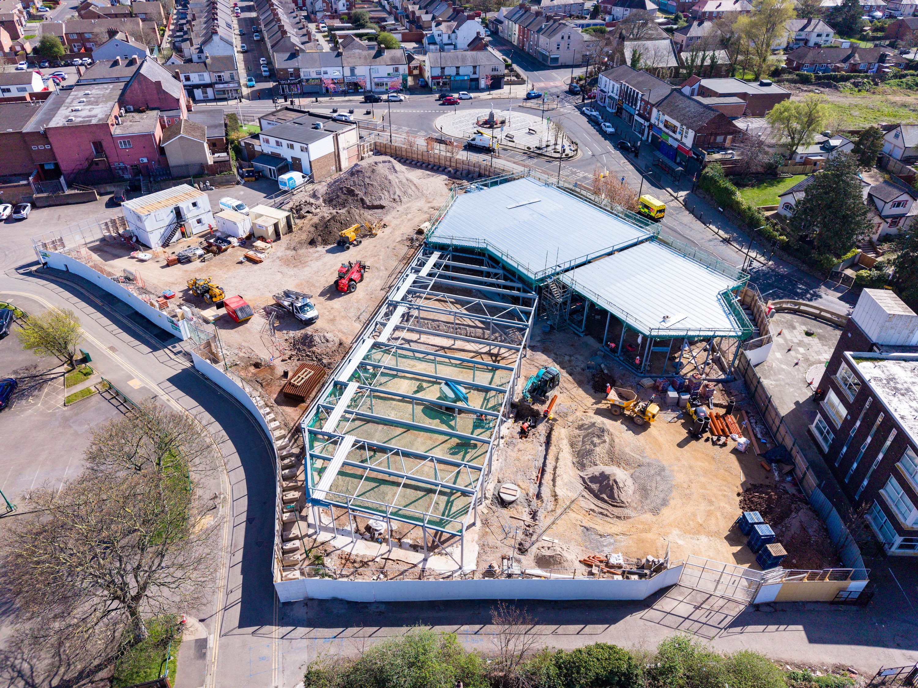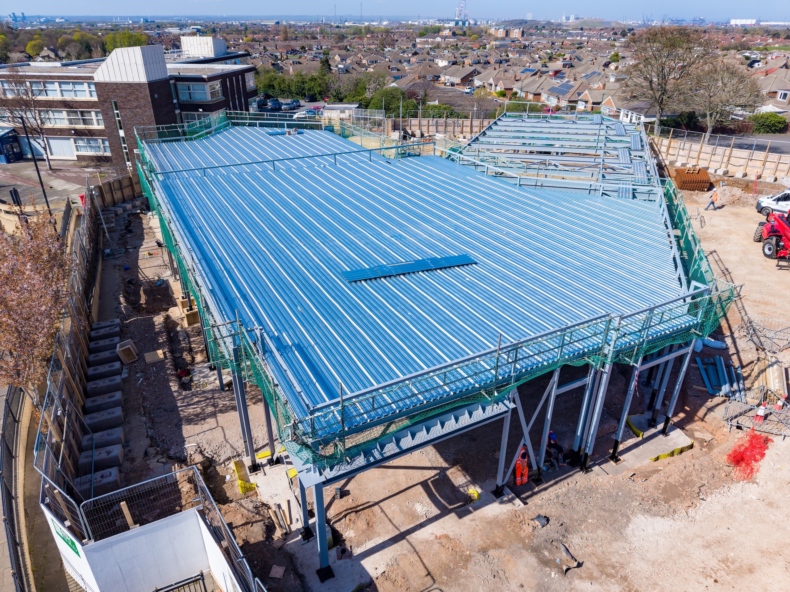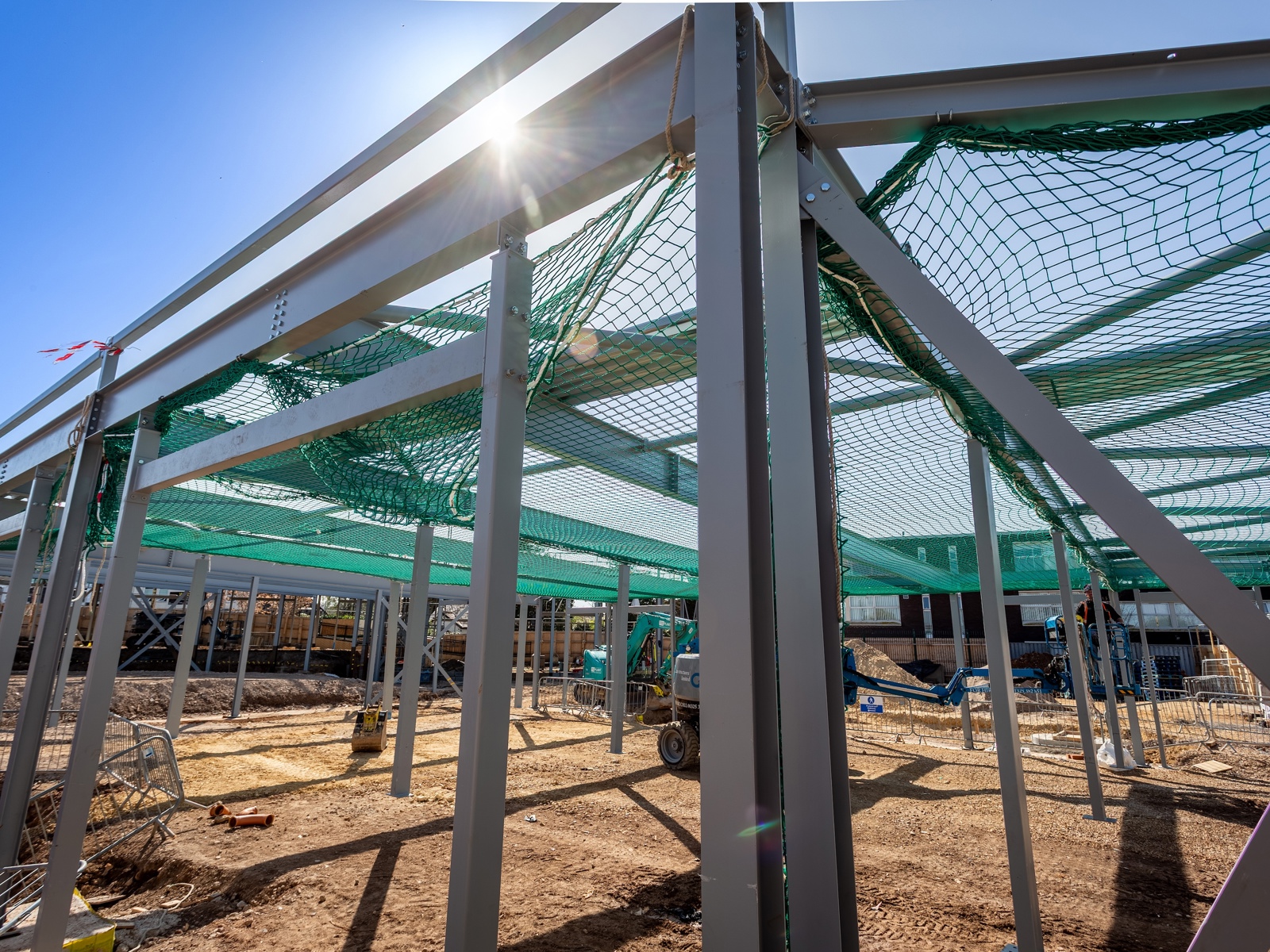 The redevelopment of Eston Precinct has marked a major milestone on site, with the steel frame installation now complete.