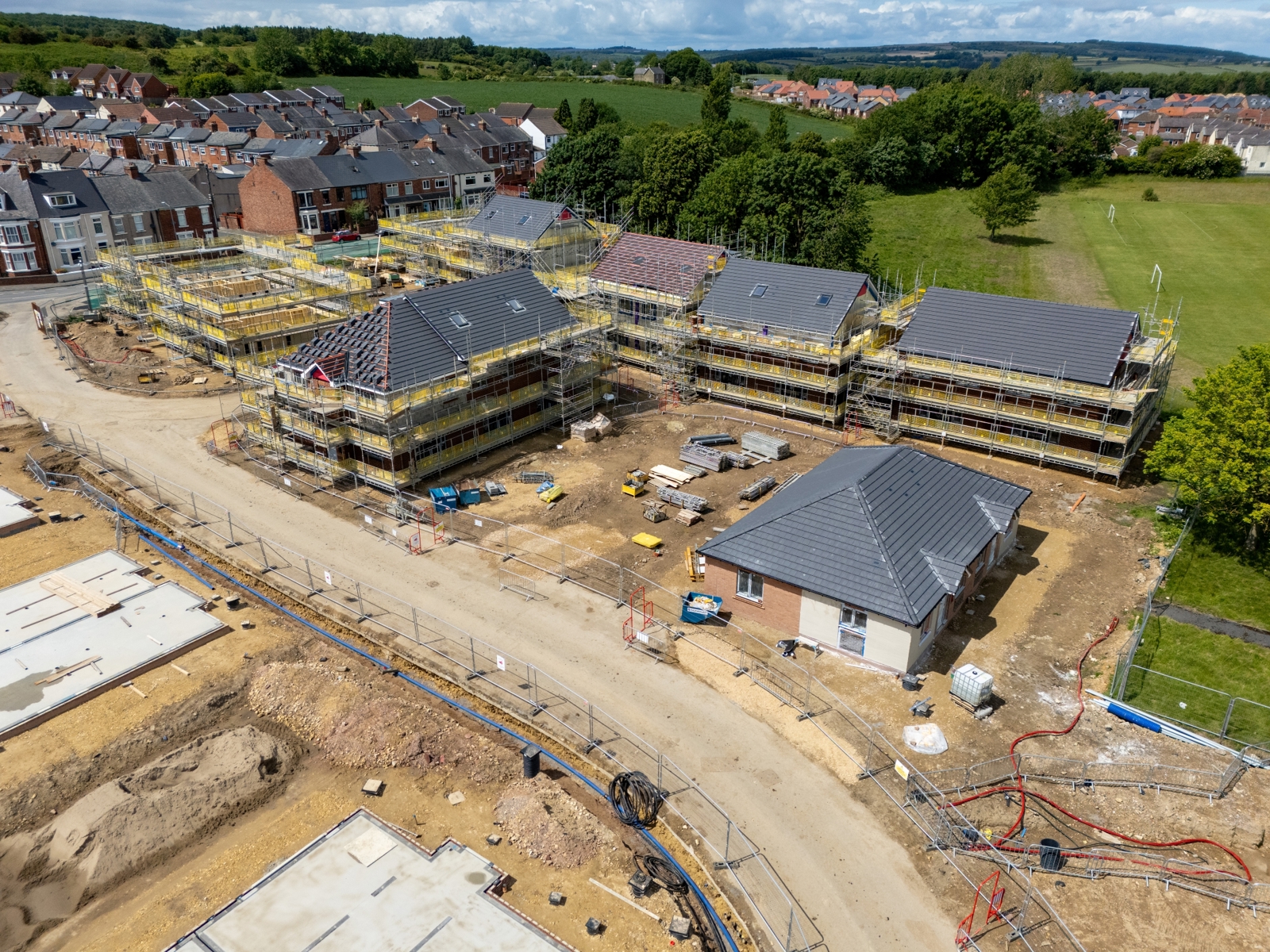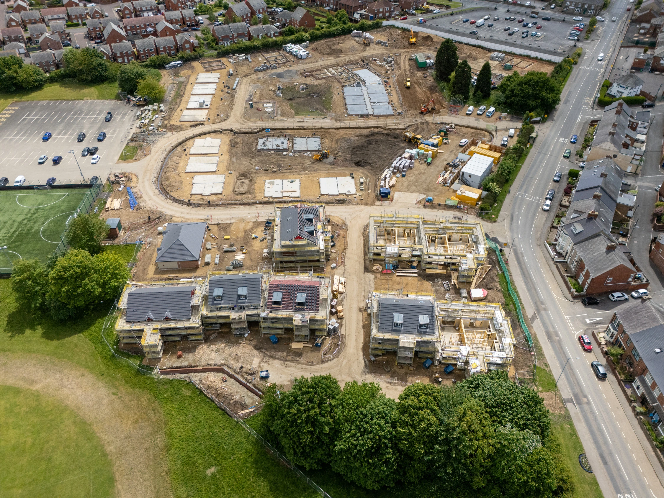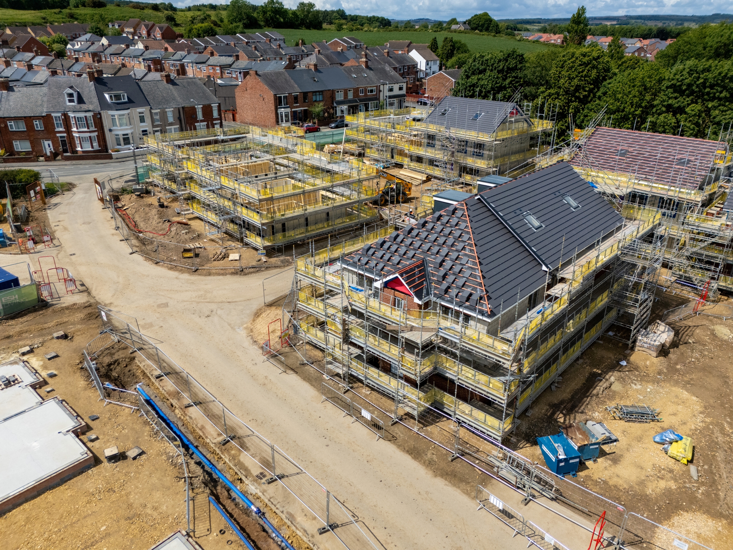 A £25 million development of 104 new affordable homes in Pelton is being delivered by Esh Construction on behalf of Karbon Homes, transforming the former Roseberry Sports Community College site.