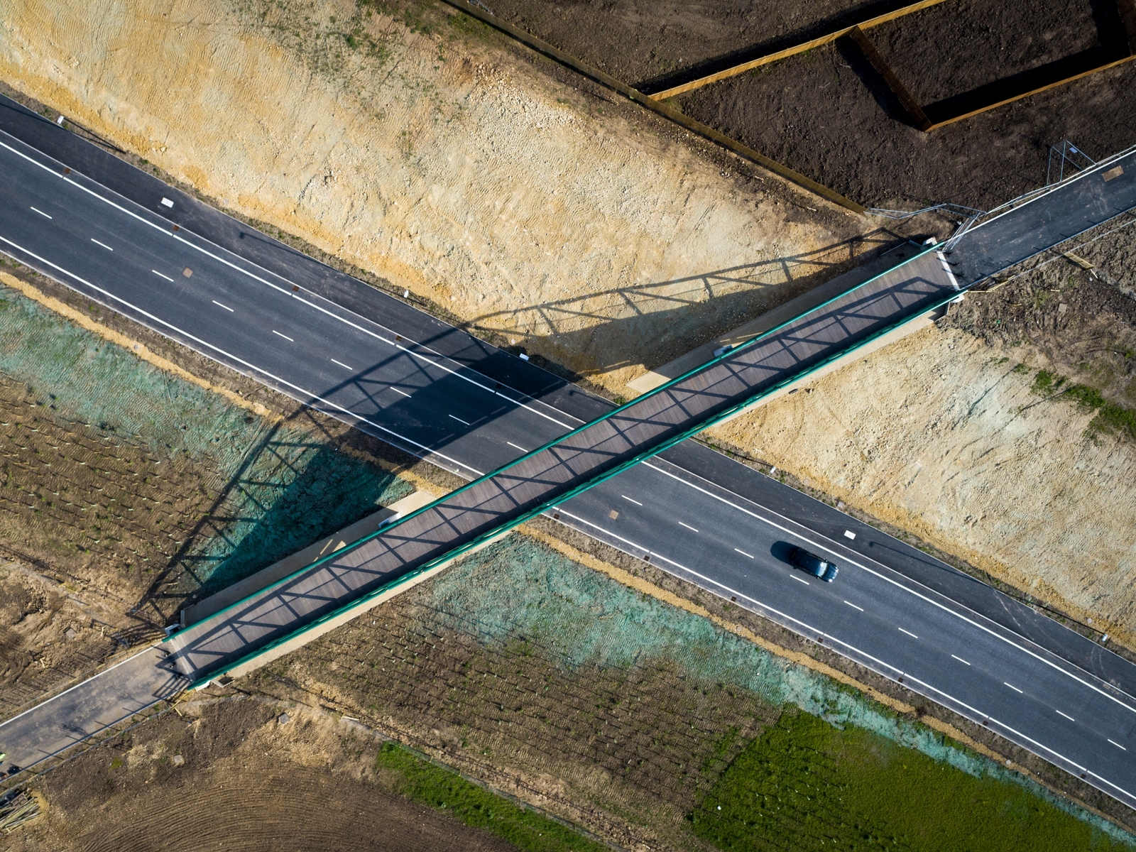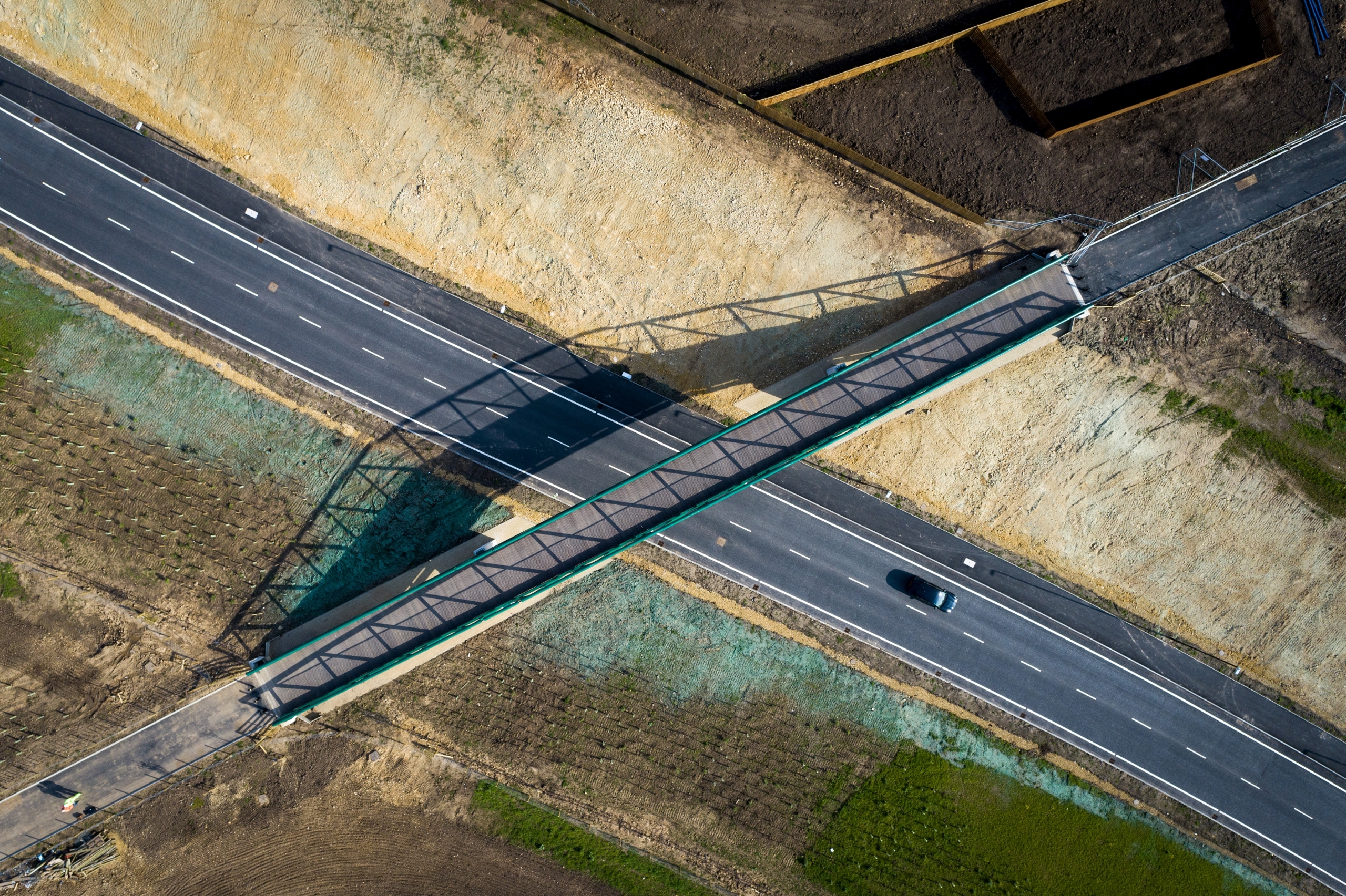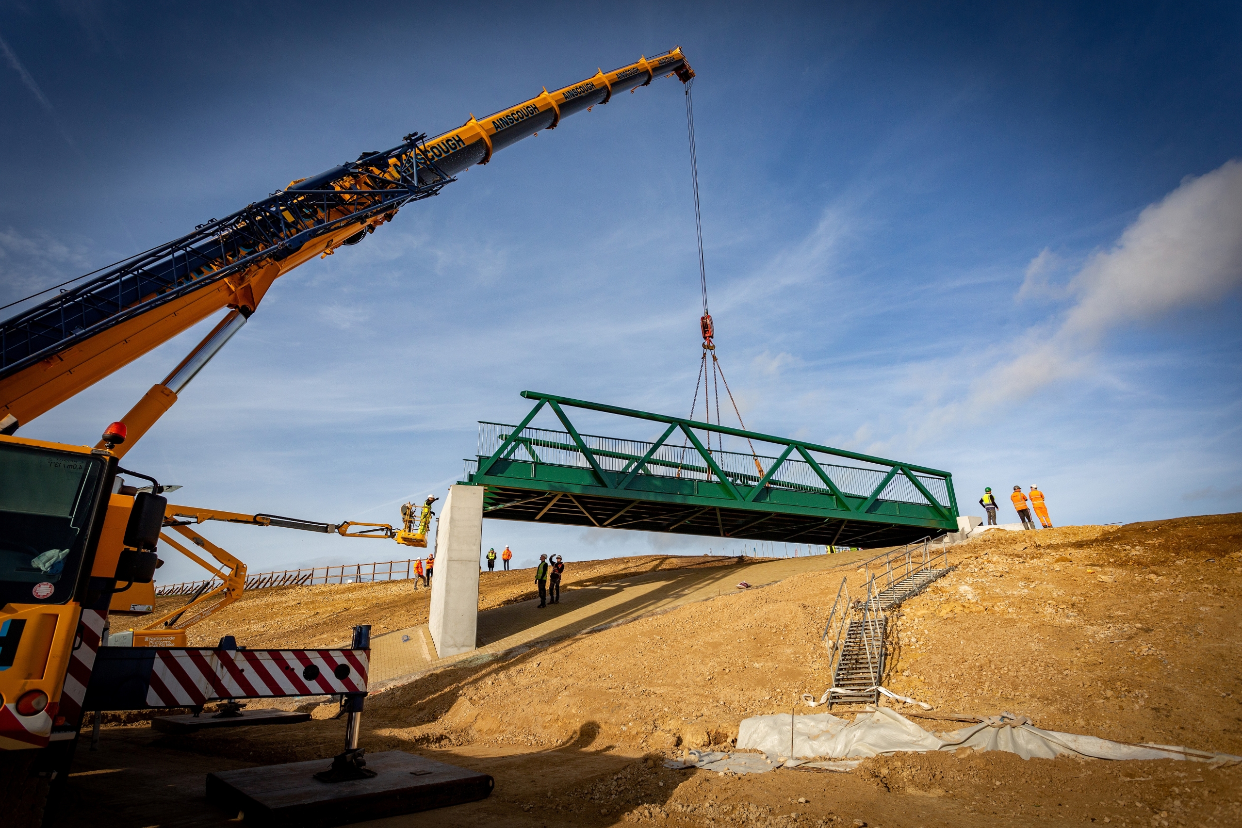A 600m single carriageway and a Non-Motorised User bridge for pedestrians, cyclists, and equestrians was constructed, with the bridge built above the link road to enable the new highway to pass beneath an existing lane.