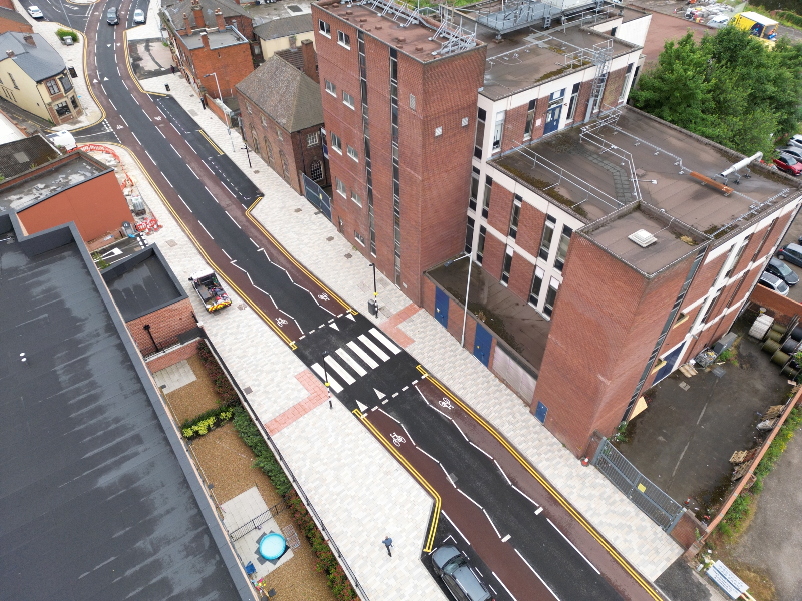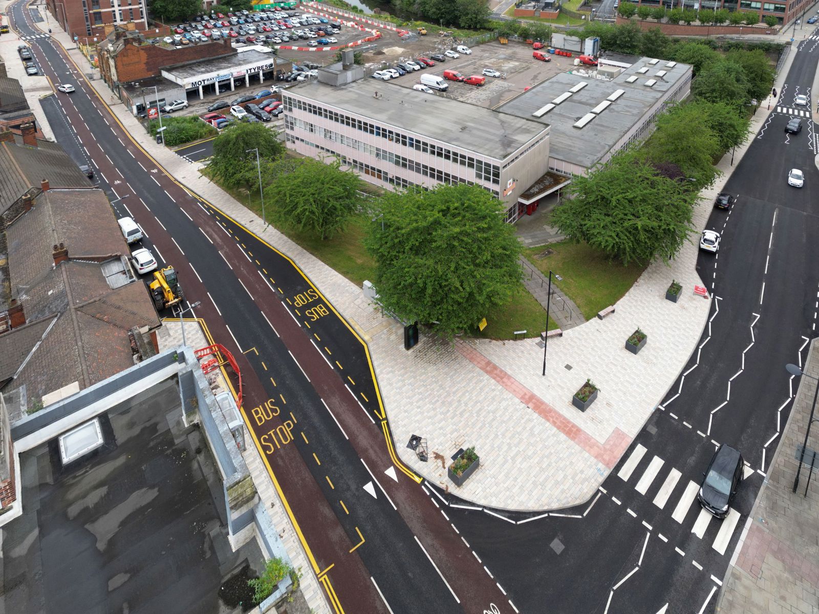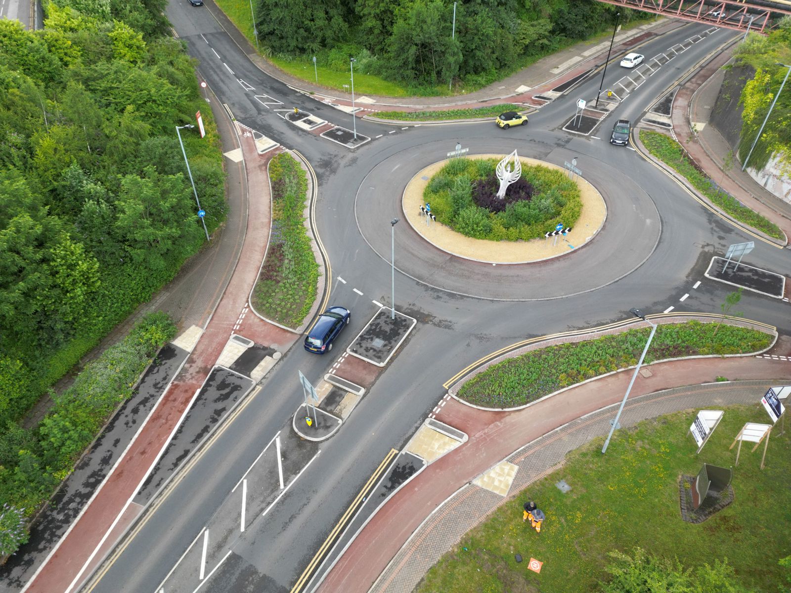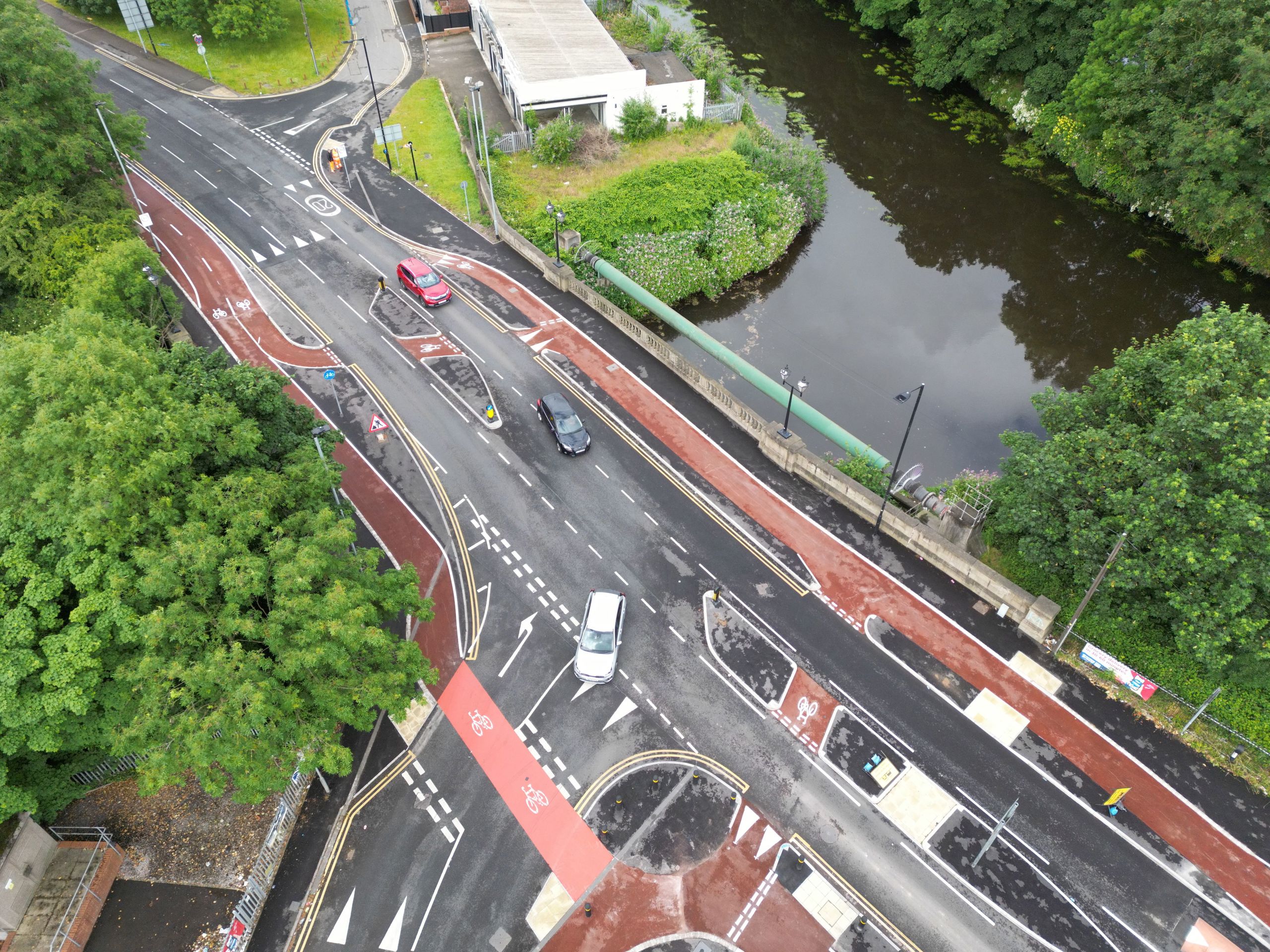 Key elements of the project involved the realignment of two major roundabouts to facilitate new cycle infrastructure, along with footpath construction, numerous statutory utility diversions and the construction of new signalised junctions with pedestrian crossings. Works included 36,433m² of carriageway resurfacing and 1,424m² of full carriageway construction, complemented by 17,160m² of footway works.