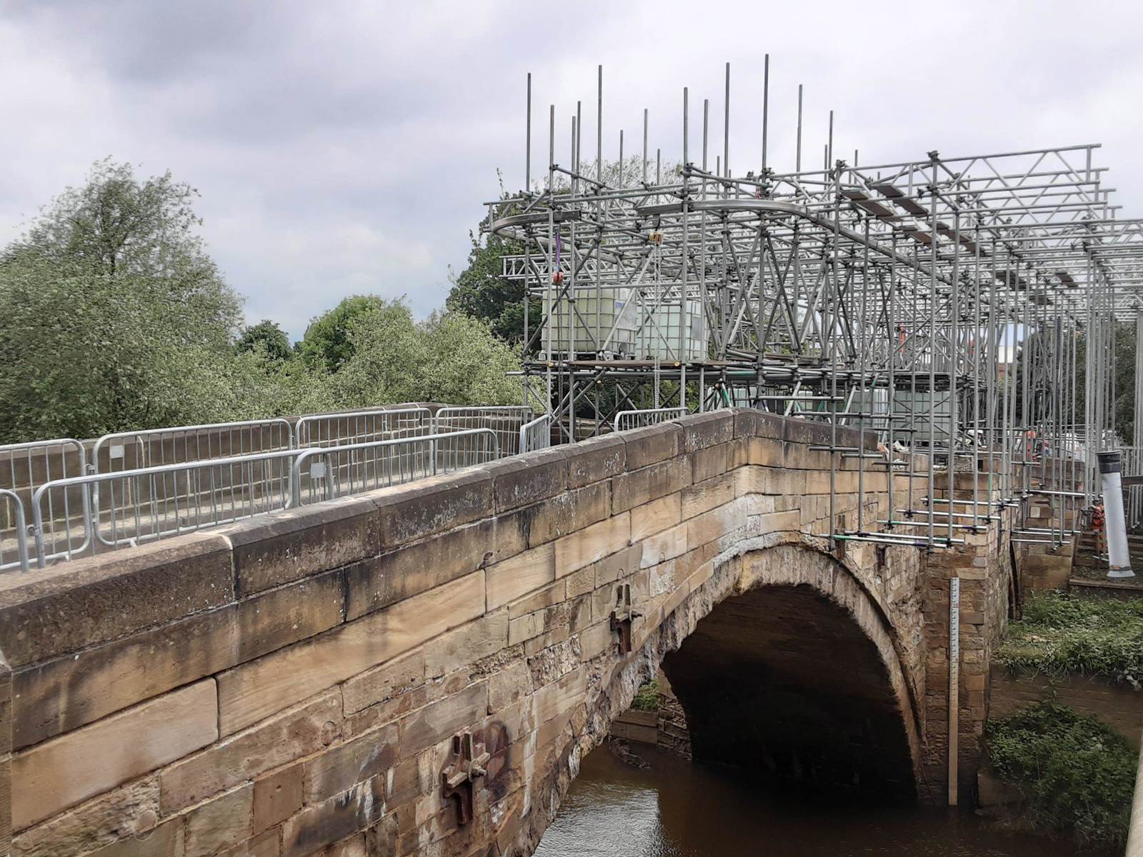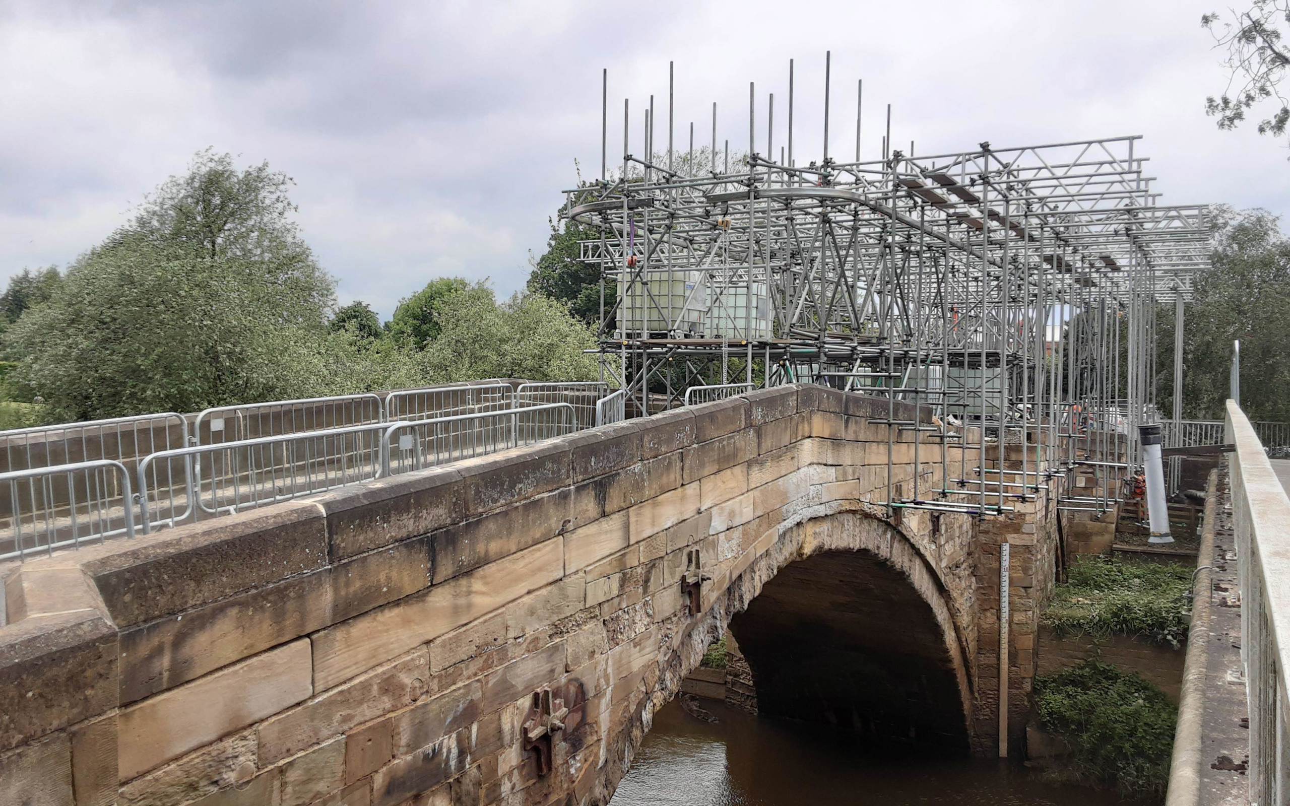 Drawing on specialist expertise and materials, owing to the bridge’s age and listed status, the work involved rebuilding damaged parapets using large stone blocks, supported by stainless steel rods for added strength, and lime mortar was used to repoint large and deep areas of the structure. A cantilever scaffold system enabled safe handling of heavy stones.
